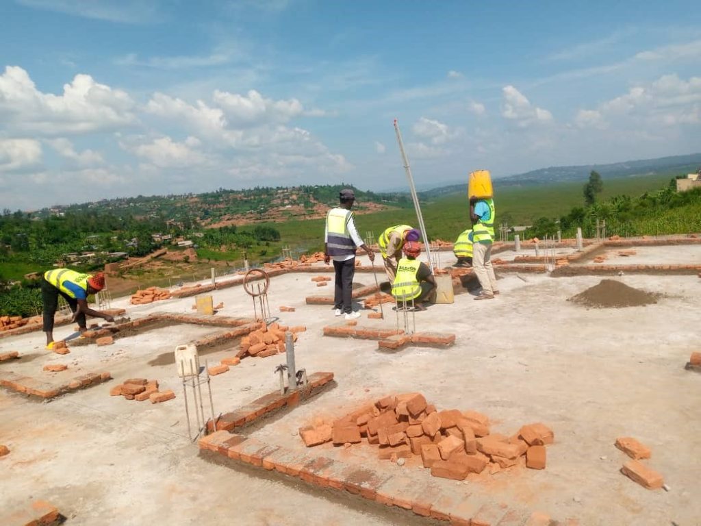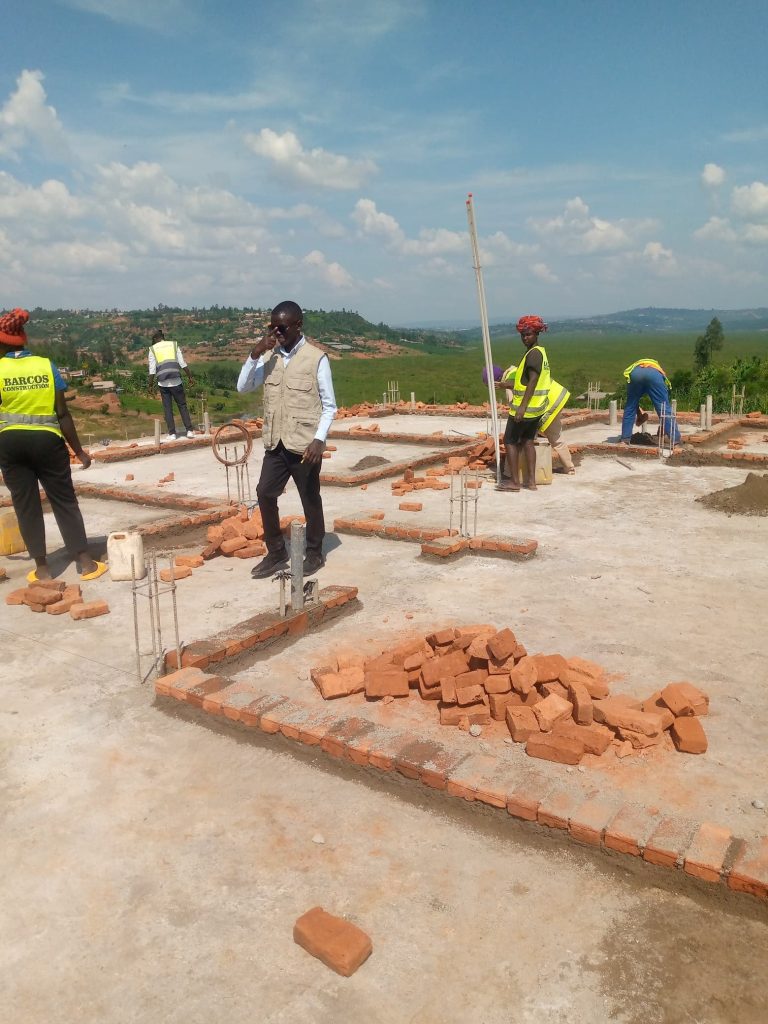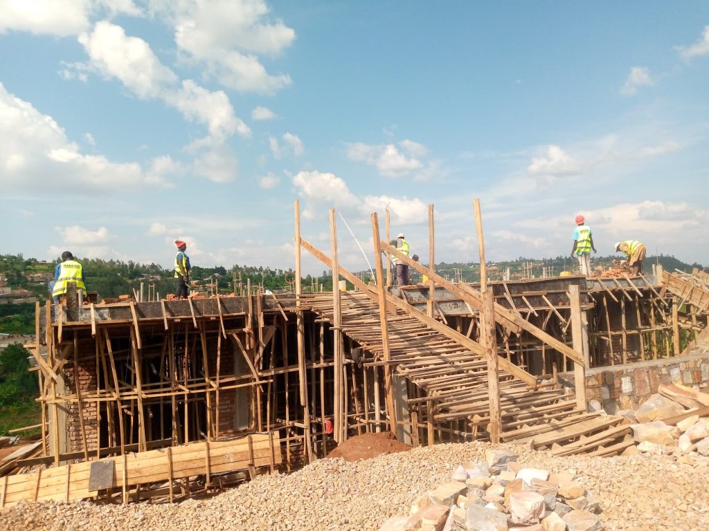 On GAHANGA, RWABUTENGE construction site, we have finished the formwork, steel works, and concrete casting of the first floor. At this stage every step was done strongly do that we have no any failure during the concreting casting. We selected the best sand (Kayumbu), the best aggregates and good cement of 42.5 N/mm2 and fresh water. Design mix ratio of 1:1:1.5