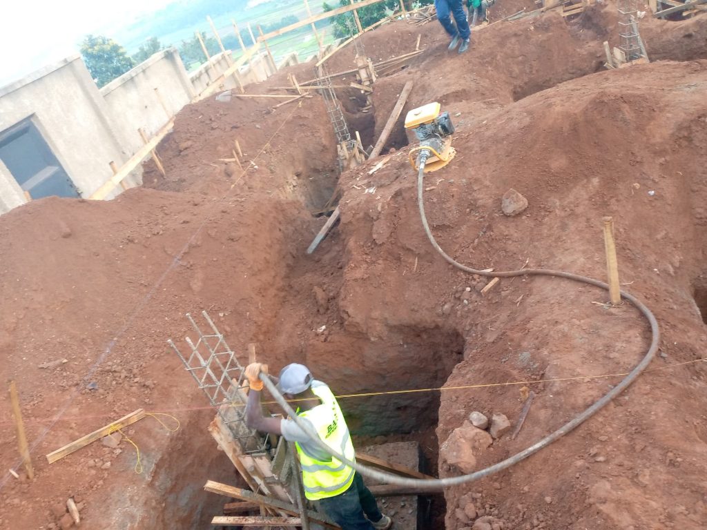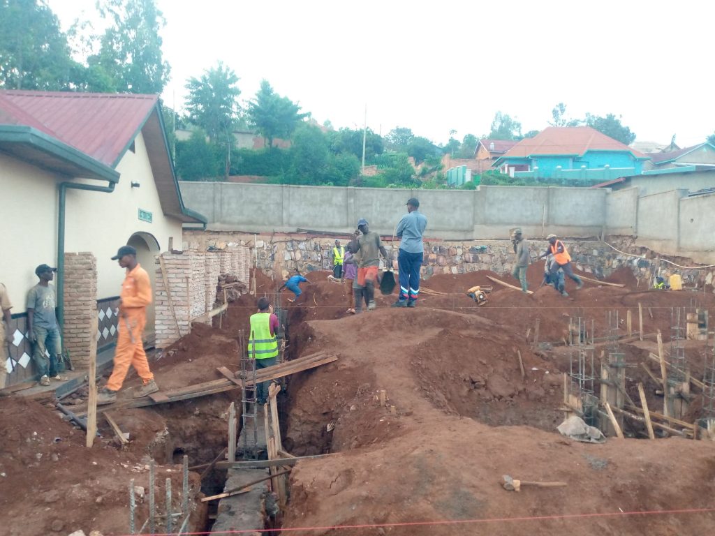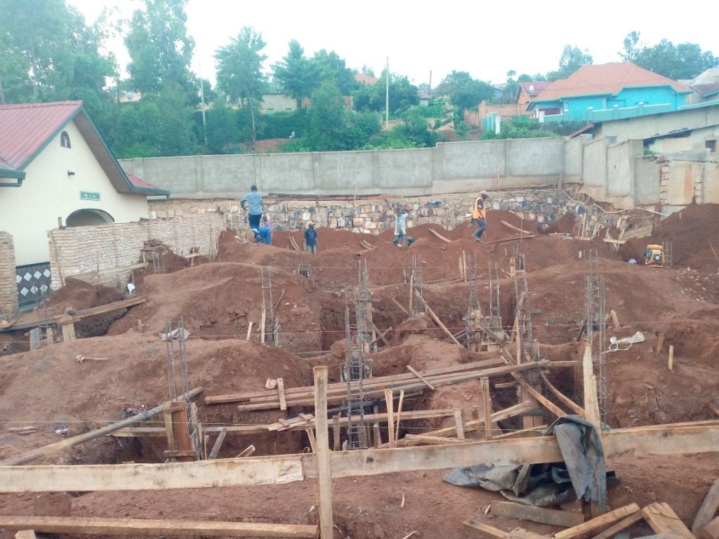 After 4 days the excavation of all footings was completed. We started formworks and steel works for the footings then we placed them in their respective footing pit, we requested the inspection from the city of Kigali, the inspection was fast and successfully approved then we got a go ahead letter to continue with casting the concrete in the footings.